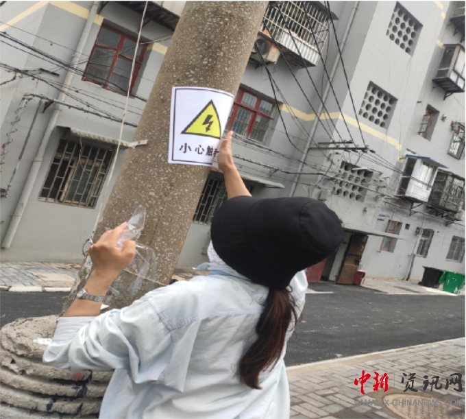 并在容易漏電的電線桿上粘貼“小心觸電”標(biāo)識,提前做好防汛準(zhǔn)備工作。