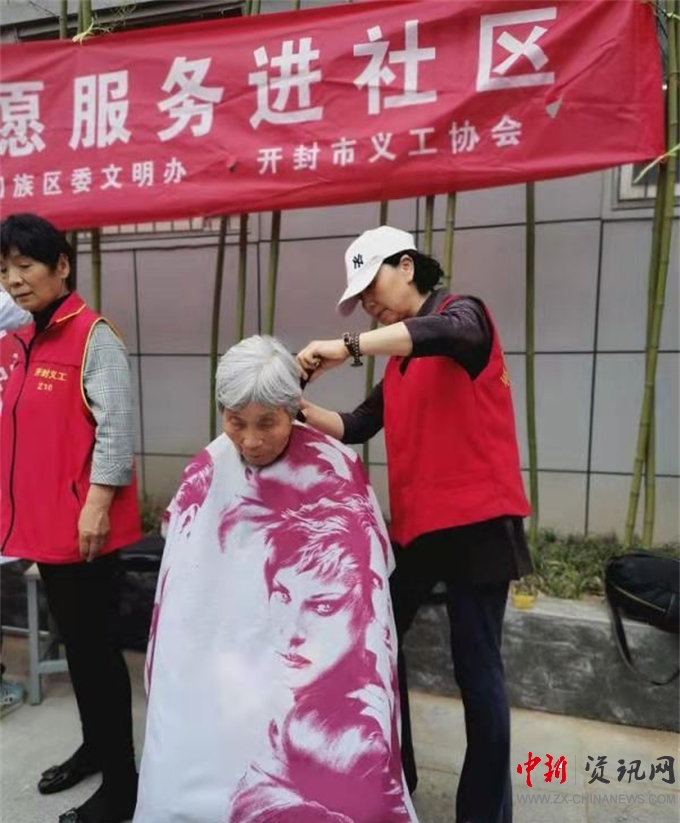 2位理發(fā)師耐心細致地為前來的居民義務(wù)剪發(fā),在理發(fā)師的巧手下,理發(fā)后的居民容光煥發(fā),紛紛豎起大拇指。