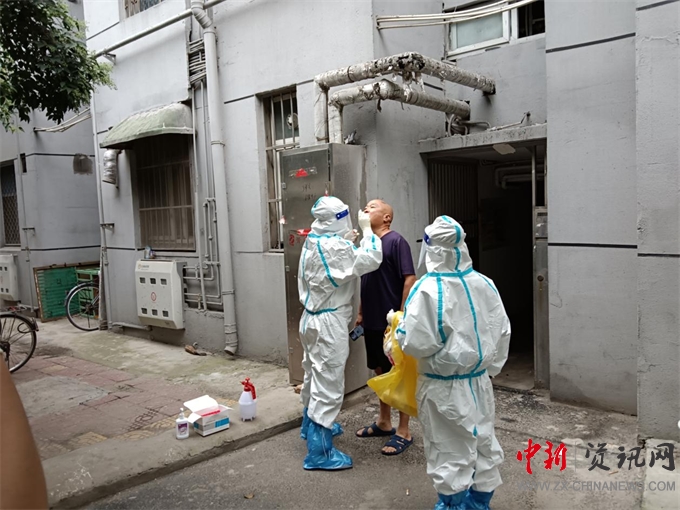 上午8點半,區(qū)醫(yī)保局黨組書記、局長程華領隊醫(yī)保局工作人員和仁安醫(yī)院醫(yī)護人員在醫(yī)院黨委書記李小文、院長李思明帶領下逐戶進行監(jiān)測。檢測過程醫(yī)護人員嚴格執(zhí)行采樣流程,規(guī)范穿戴防護用品,每完成一組采樣都進行自身消毒,保證安全無誤。天氣炎熱,醫(yī)務人員身著密不透氣的防護服很快被汗水浸透,但為守護群眾生命安全仍堅持前行!