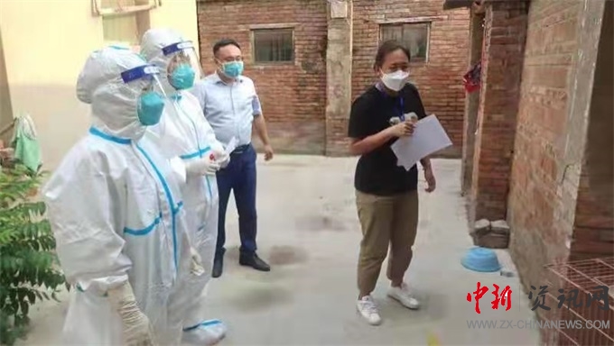 針對不能到現(xiàn)場進行核酸檢測的行動不便人員,分包社區(qū)的區(qū)委宣傳部副部長江宗懌組織一組醫(yī)護人員及社區(qū)工作者到居民家中進行上門檢測服務(wù)。