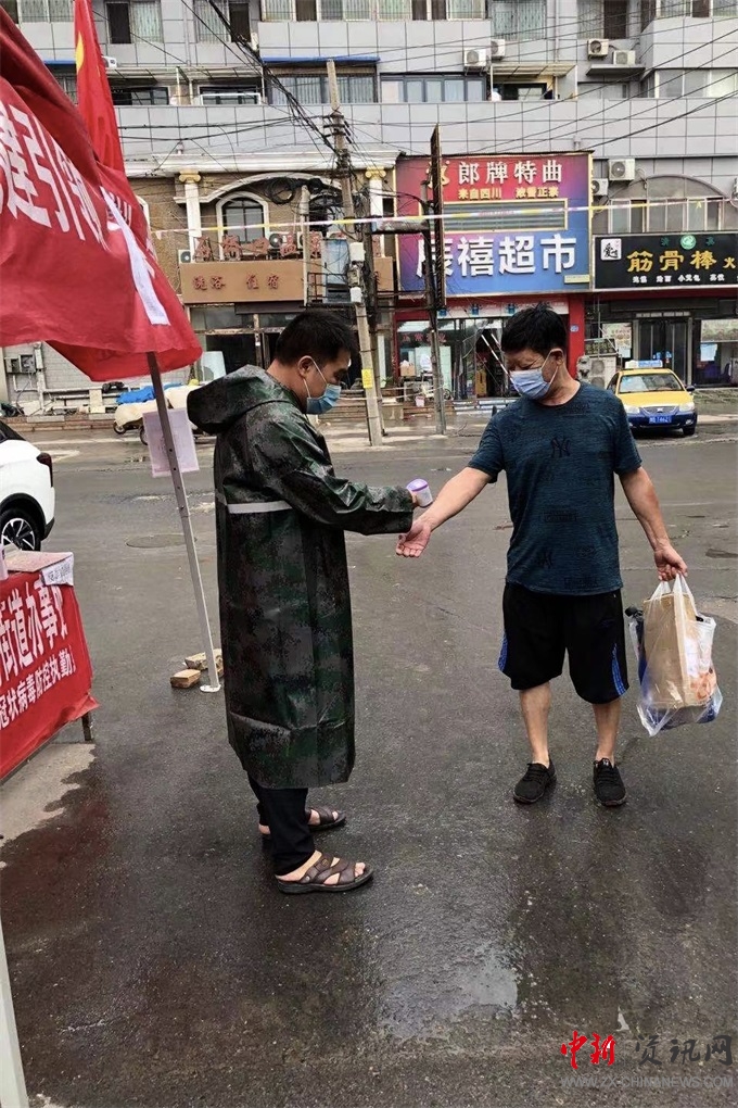 中新河南網(wǎng)8月22日電(付海濤 劉記)8月22日,面對突如其來的降雨,開封市順河回族區(qū)審計(jì)局在民心社區(qū)防疫值班的同志們?nèi)詧?jiān)守在防疫一線,對來往的行人進(jìn)行排查。
