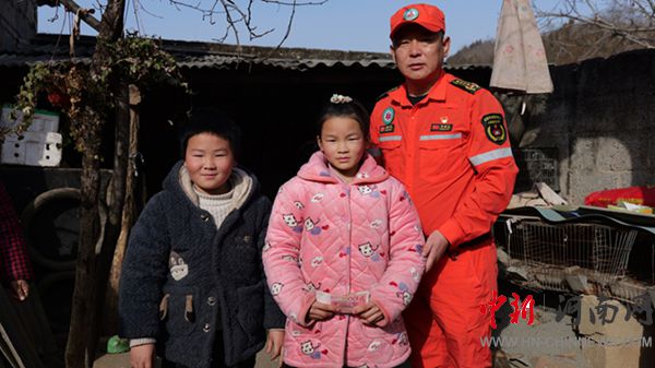 中新河南網(wǎng)1月14日電( 趙民強(qiáng) )14日上午,河南洛陽“戎耀河洛退役軍人志愿服務(wù)總隊”的隊友們,來到欒川縣潭頭鎮(zhèn)何村,將帶來的米面油和衣服等愛心物資,捐贈給黃夢鴿的家人?傟犻L張曉旭還把800元現(xiàn)金,做為新年禮物,贈給黃夢鴿的弟弟妹妹。