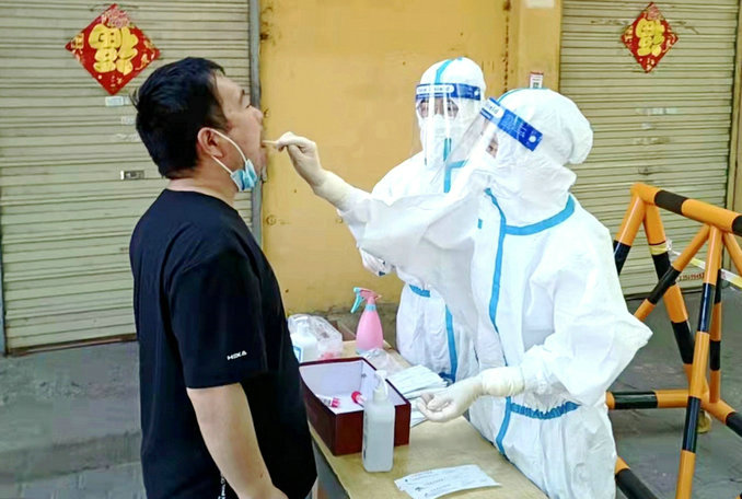 為確保盡快完成社會(huì)面雙清零任務(wù),5月5日白天采樣團(tuán)隊(duì)進(jìn)行第三輪全員核酸采樣后,晚上9點(diǎn)臨時(shí)增加第四輪重點(diǎn)人群核酸采樣任務(wù),連續(xù)作戰(zhàn)到6日凌晨4點(diǎn)半,為了盡快開展第五輪全員核酸采樣,采樣團(tuán)隊(duì)簡(jiǎn)單休息3個(gè)小時(shí),7點(diǎn)半又再次前往分包社區(qū)開展全員核酸采樣工作。