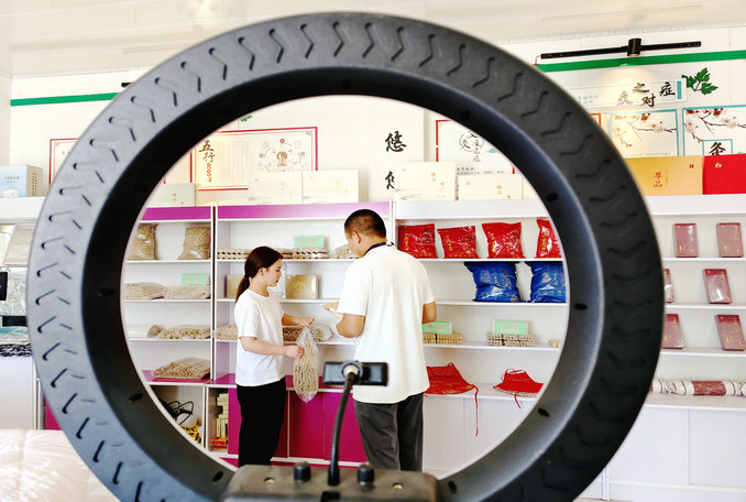 為啃下村集體經(jīng)濟(jì)這塊硬骨頭,她借光“生金”,于2021年3月初申請光伏發(fā)電項目,2021年12月項目開始運(yùn)行,預(yù)計每年村集體經(jīng)濟(jì)收入可增加7−8萬元;她招商引資,帶領(lǐng)村兩委班子成員先后到廣東、山東等地考察項目,謀劃上寨村發(fā)展藍(lán)圖,引來生產(chǎn)洗臉巾的項目后,向上級申請資金修葺村中廢舊廠房當(dāng)作項目用地,今年3月份廠房翻新完畢,只等通過驗收后與該項目簽約、投入使用;今年2月份,簽約村中晟艾源公司,她直播帶貨,有時候一場直播下來可銷售700多單。
