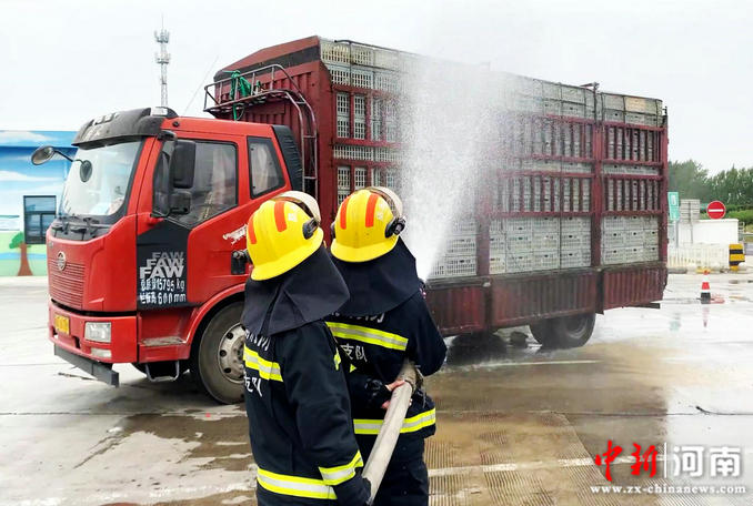 中新河南網(wǎng)6月10日電(張培 姚浩瀚)6月9日13時(shí)58分,許昌市消防救援支隊(duì)指揮中心接到了一起特殊的報(bào)警求助,稱(chēng)在許昌南服務(wù)區(qū)內(nèi),一輛貨車(chē)因發(fā)動(dòng)機(jī)故障被迫停在烈日下,滿(mǎn)載3000只的活雞需要幫忙澆水進(jìn)行降溫。接到報(bào)警后,指揮中心立即調(diào)派開(kāi)發(fā)區(qū)消防救援大隊(duì)瑞昌路消防救援站前往現(xiàn)場(chǎng)救援。