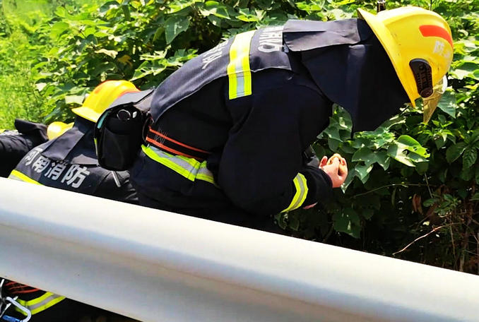 由于隔離護(hù)欄外散落很多的小雞崽,為了幫當(dāng)事人挽回?fù)p失,在做好現(xiàn)場(chǎng)警戒的同時(shí),消防員開始對(duì)散落的小雞崽進(jìn)行“抓捕”。