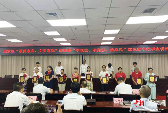 中新河南網(wǎng)6月29日電(梁靖 崔春杰)以德潤心,以文化人。為進一步擴大“文明家庭”“最美家庭”在文明城市創(chuàng)建中的積極作用和影響力,6月28日,許昌市建安區(qū)文明辦、建安區(qū)婦聯(lián)聯(lián)合開展文明家庭、最美家庭表彰暨“學黨史、頌黨恩、傳家風”紅色家書故事宣講活動。建安區(qū)委常委、宣傳部長楚朝輝,建安區(qū)人大副主任李志安,建安區(qū)副區(qū)長米志偉,建安區(qū)政協(xié)副主席馬麗等出席活動。