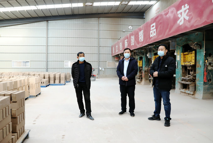 在美華耐火材料有限公司,孫志強(qiáng)與企業(yè)負(fù)責(zé)人一起來(lái)來(lái)到生產(chǎn)車(chē)間,與一線工作人員親切交談,詳細(xì)了解工作人員個(gè)人防護(hù)、消毒消殺和春節(jié)期間生活保障等情況,叮囑他們?cè)诠ぷ骱蜕钪凶龊靡咔榉雷o(hù),注意自身安全。在禹州市宏瑞耐火材料有限公司,孫志強(qiáng)與企業(yè)負(fù)責(zé)人一起研究解決企業(yè)復(fù)工復(fù)產(chǎn)中的員工返崗、企業(yè)資金、車(chē)間改造、疫情防控等方面問(wèn)題,指導(dǎo)企業(yè)細(xì)化、完善復(fù)工方案和防控預(yù)案。