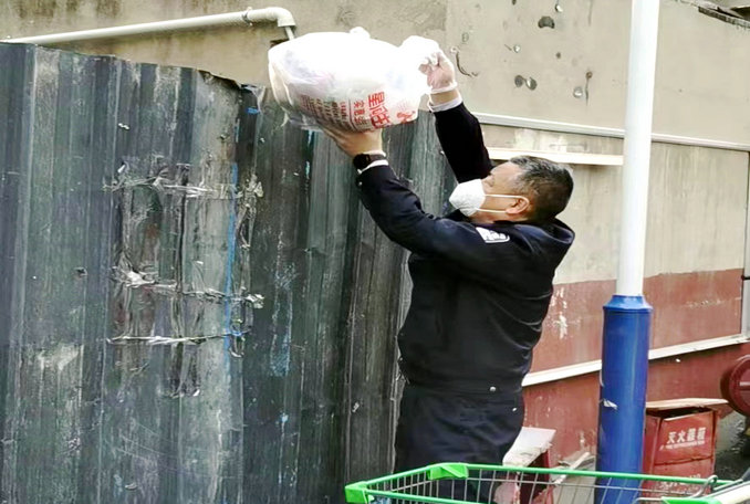 不敢過多休息,他們又穿梭在小區(qū)的公共區(qū)域、樓道,挨家挨戶將垃圾拎下樓進(jìn)行消毒,每天要對(duì)整整五個(gè)大垃圾桶的垃圾集中統(tǒng)一處理。午飯后,又開始為居民配送生活物資,用小推車將成堆的物資推到卡點(diǎn)處,投放到每戶門口,解決群眾的日常生活所需……雖說許昌已經(jīng)調(diào)整了防控措施,但對(duì)于身處封控區(qū)的他們來說,防疫的腳步還沒有停下。