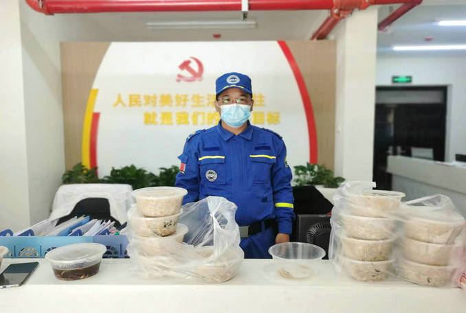 他們查找防疫漏洞,引導駛入車輛進行檢查,查驗來往人員雙碼情況和體溫情況。到社區(qū)后李華智發(fā)現(xiàn)醫(yī)護及工作人員的早餐比較簡單,他主動協(xié)調許昌市愛心粥屋每天早上為醫(yī)護工作人員提供免費的熱粥,用實際行動支援抗疫一線。五月的許昌晝夜溫差達十幾度,他們不分工作日與休息日,24小時輪流值守,落實最嚴格的檢測防控措施。