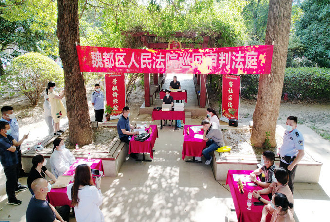 隨著一聲清脆的法槌敲響,魏都區(qū)人民法院巡回法庭在許昌市某小區(qū)內(nèi)正式開庭。在該小區(qū)小廣場上,也圍滿了前來旁聽的小區(qū)居民,大家都被這種開在“家門口”的法庭所吸引。