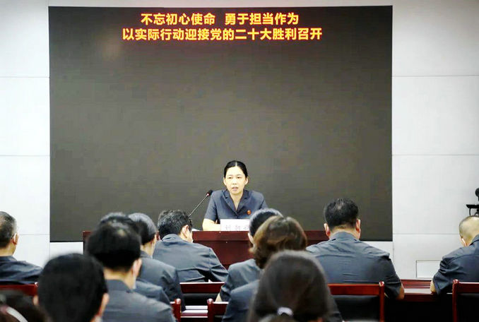 中新河南網(wǎng)7月1日電(梁靖 姚曉芹 潘國(guó)慶)值此“七一”建黨節(jié)和黨的二十大勝利召開(kāi)之際,6月28日,襄城縣人民法院黨組書(shū)記、院長(zhǎng)劉朝娟以《不忘初心 牢記使命 勇于擔(dān)當(dāng)作為 以實(shí)際行動(dòng)迎接黨的二十大勝利召開(kāi)》為題,為全院干警上了一堂專題黨課。