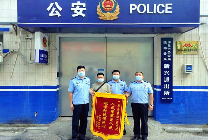 7月23日9時(shí)許,轄區(qū)兩名群眾一起舉著“人民警察為人民、破案神速得民心”錦旗來(lái)到許昌市公安局魏都分局新興派出所,對(duì)民警在一天內(nèi)迅速破案,挽回他們的經(jīng)濟(jì)損失表達(dá)了發(fā)自內(nèi)心的感謝之情。