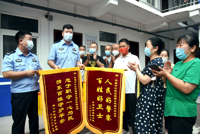 中新河南網(wǎng)7月29日(張培 曹秀軍)“我們是26號(hào)早上到派出所報(bào)案電動(dòng)車(chē)電瓶被偷了,那天半夜我睡醒站在窗口,看見(jiàn)民警還在巡邏哩。天剛亮,就聽(tīng)說(shuō)蟊賊抓到了,追回來(lái)了好多電瓶。這暑熱連天的,民警真是辛苦啦……”7月29日一大早,十幾名群眾捧著兩面錦旗,來(lái)到許昌市公安局魏都分局新興派出所,向辦案民警表示感謝。