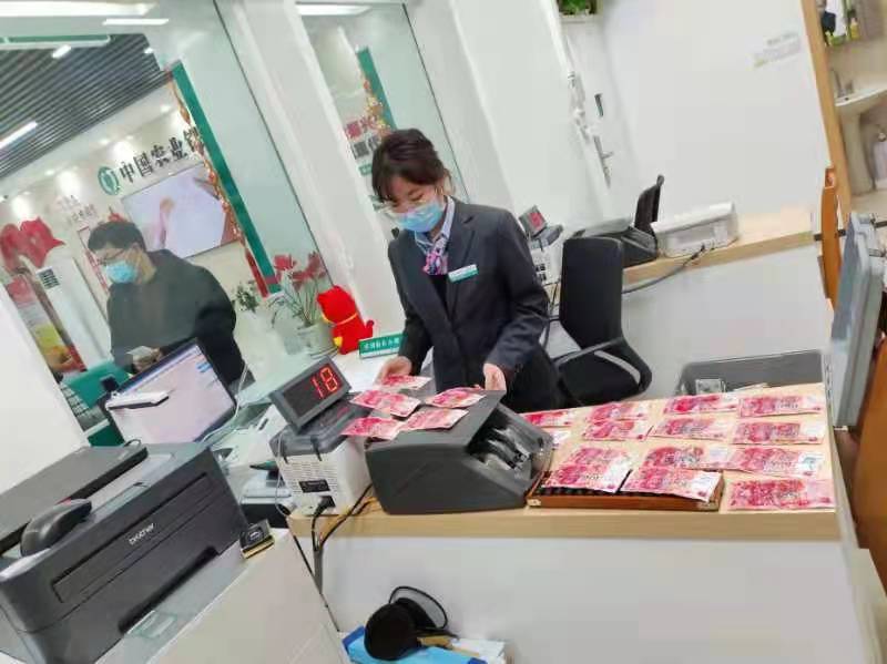 稍作整理后,客戶通過柜臺辦理了該業(yè)務(wù)。柜面經(jīng)理錢鑫宇和內(nèi)勤主任趙紅雷耐心地對殘幣進行清點、比對,將兌換的殘幣整理好,妥善存放起來。經(jīng)過一個多小時努力,最終幫助蔣女士成功兌換2200元。