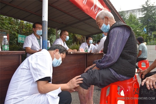 中新河南網(wǎng)駐馬店9月17日電(通訊員 曹天順 蘇楠)9月12日-18日是2021 年“服務(wù)百姓 健康行動(dòng)”全國(guó)大型義診活動(dòng)周。9月17日,確山縣人民醫(yī)院康復(fù)科、心血管內(nèi)科、骨科、外科、呼吸科專家來(lái)到雙河鎮(zhèn)衛(wèi)生院,開展義診活動(dòng)和健康科普知識(shí)宣傳,為村民們送來(lái)了實(shí)實(shí)在在的“健康大禮包”。