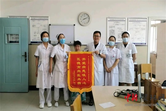 中新河南網(wǎng)駐馬店9月17日電(通訊員 李明華 邢小寶)近日,駐馬店市第一人民醫(yī)院神經(jīng)內(nèi)科二病區(qū)來了一位特殊的客人。她激動(dòng)地走入神內(nèi)二科醫(yī)生辦公室說道,“我是來向神經(jīng)內(nèi)科二病區(qū)全體醫(yī)護(hù)人員表示感謝的!”說著便展開錦旗,映入眼簾的是“醫(yī)德高尚醫(yī)術(shù)精,關(guān)愛患者暖人心”金色大字;颊呒(dòng)地說:廖磊醫(yī)生再一次把我從死神的邊緣線拉回來了,感謝廖磊醫(yī)生。