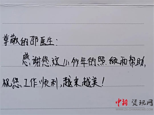 中新河南網(wǎng)駐馬店9月18日電(通訊員 董召 周甜)9月16日,光山縣患者詹某為市第二人民醫(yī)院兒少心理科邵新月副主任送來一面錦旗和一束鮮花,表示感謝。錦旗上面“醫(yī)德高尚暖人心,用心行醫(yī)盡責(zé)任”幾個大字格外耀眼,映射出邵新月副主任高明的醫(yī)術(shù)以及患者對全體醫(yī)護(hù)人員的感激之情。