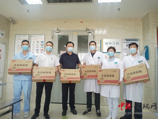 中新河南網(wǎng)駐馬店9月21日電(通訊員 朱盼盼 周甜)又是一年團(tuán)圓日,明月清風(fēng)寄相思。中秋節(jié)是人們回家團(tuán)圓的日子,但在駐馬店市第二人民醫(yī)院全護(hù)理病房,仍有許多患者因?yàn)榧膊⌒枰≡褐委,不能回家與親人團(tuán)聚。為了讓患者們?cè)谧≡浩陂g也能感受到節(jié)日氛圍,感受家的溫暖,在中秋佳節(jié)當(dāng)天,醫(yī)護(hù)人員將代表團(tuán)圓和平安的月餅送到住院患者的手中,并送上醫(yī)院的問(wèn)候和祝福。