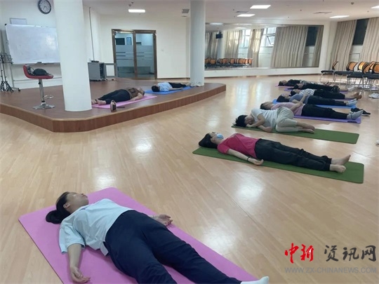 8點(diǎn)整,伴隨著優(yōu)美的音樂,學(xué)員們?cè)趶埢鄯贾魅魏团撕S褡o(hù)士的帶領(lǐng)下練起了“八段錦”。“八段錦”是中國傳統(tǒng)氣功中的內(nèi)臟導(dǎo)引術(shù),是一種古老的養(yǎng)生運(yùn)動(dòng),融合了氣功與健身操的養(yǎng)生方式……”在張慧芳主任的講解下,大家對(duì)八段錦有了初步的了解,練習(xí)過后,大家都感到身體非常的放松舒適,心情也豁然開朗。