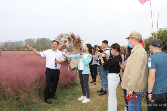 中新河南網(wǎng)駐馬店9月28電(通訊員 賀志勇)“秋意漸濃,粉黛花開(kāi);相約小鎮(zhèn),遇見(jiàn)精彩。”9月28日上午,由河南省臺(tái)辦組織的臺(tái)灣《聯(lián)合報(bào)》、《東森新聞云》,中央電視臺(tái)CCTV-4和河南電視臺(tái)等媒體組成的海峽兩岸記者聯(lián)合采訪團(tuán)一行25人,在平輿縣委常委、宣傳部長(zhǎng)、副縣長(zhǎng)王楠和東皇街道黨工委書(shū)記辛長(zhǎng)松的陪同下,走進(jìn)平輿縣東皇街道藍(lán)天芝麻小鎮(zhèn),探尋芝麻的起源以及藍(lán)天芝麻小鎮(zhèn)令人心醉的美景。