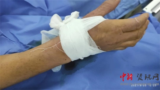 為更好地服務患者,心內(nèi)科二病區(qū)副主任醫(yī)師韓宇東通過不斷追求技術創(chuàng)新,在相關醫(yī)護人員的幫助下成功為患者實施了冠脈介入新途徑——遠端橈動脈穿刺術,穿刺點選擇在第一與第二掌骨之間的鼻煙壺或合谷穴區(qū),對準橈動脈遠端的分支血管進行穿刺插入導絲導管,穿刺過程十分順利,患者沒有明顯疼痛感,該患者術后 2 小時即拆除了止血帶,手部活動自如。