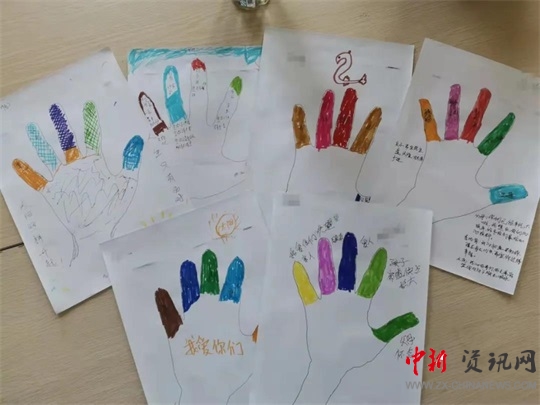 患者周某說(shuō):“大拇指代表自己的父母,可父母已經(jīng)不在了,涂上深綠色代表非常懷念;食指代表孩子,涂上淺綠色代表希望,希望孩子能夠平平安安健健康康;中指代表愛(ài)人,涂上藍(lán)色代表感恩,感恩愛(ài)人與自己的相濡以沫;無(wú)名指代表朋友,涂上粉色代表失望,因?yàn)榕c朋友相處的不是很愉快;小拇指代表親人,涂上黃色代表珍惜,親人給了自己很多幫助,珍惜與他們的相處時(shí)光。”患者張某說(shuō):“大拇指代表父母,涂的是紅色,紅色代表愛(ài),父母給予我生命,養(yǎng)育我長(zhǎng)大,感謝父母……”