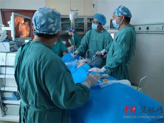 中新河南網(wǎng)駐馬店10月12日電(通訊員 王建偉)近日,在手術(shù)室麻醉醫(yī)師、護理團隊的通力配合下,上蔡縣中醫(yī)院外一科團隊在河南中醫(yī)藥大學第一附屬醫(yī)院普外科專家馬二民副院長的指導及朱元浩副主任的帶領下,再次成功完成腹腔鏡下膽囊切除術(shù);颊撸簞⒛衬,性別:女,年齡:67歲,以“皮膚黃染伴腹痛5天”為主訴入院,以“黃疸待查”為診斷,入住上蔡縣中醫(yī)院內(nèi)科治療。入院后檢查胸部DR:胸像未見明顯異常,建議結(jié)合臨床。胸部CT:1.膽囊炎、膽囊結(jié)石;2.胰腺鉤突模糊,建議增強掃描;3.膽總管擴張。心電圖:竇性心律,側(cè)壁T波低平。
