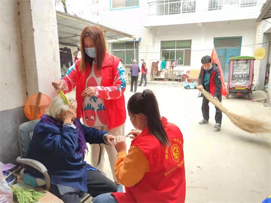 每到一戶老人家中,志愿者們有的給老人梳頭發(fā)、剪指甲,有的直接扛起掃把掃起地來(lái),有的在為老人們疊被子、鋪床,暖心舉動(dòng)把微涼的秋意輕輕拂去,留在志愿者和老人們臉上的笑意格外美麗。