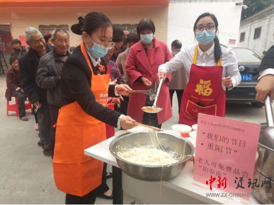 中新河南網(wǎng)駐馬店10月14日電(通訊員 阮紅全)九九重陽節(jié),濃濃敬老情。為深入學(xué)習(xí)貫徹黨的十九大精神,大力弘揚(yáng)“奉獻(xiàn)、友愛、互助、進(jìn)步”的志愿精神和中華民族尊老敬老愛老的傳統(tǒng)美德,10月14日,汝南縣羅店鎮(zhèn)政府聯(lián)合泰隆銀行開展“我們的節(jié)日·重陽節(jié)”主題活動(dòng),讓60歲以上老人免費(fèi)品嘗“陽春面”。