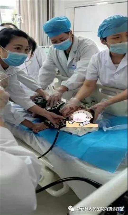在征得監(jiān)護(hù)人同意,完善各項(xiàng)檢查后,開始了為幼兒在全麻下行透明帽輔助胃鏡下食管異物取出術(shù)。內(nèi)鏡室主任張綱、麻醉主任及醫(yī)師和科內(nèi)護(hù)士們的緊密配合下,用時(shí)不到1分鐘,就順利取出了硬幣。術(shù)后觀察1個(gè)小時(shí)無任何不適后離開。