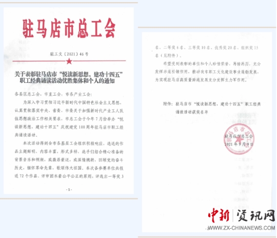 中新河南網(wǎng)駐馬店10月18日電(通訊員 周甜)近日,駐馬店市總工會表彰了一批“悅讀新思想,建功十四五”慶祝建黨100周年駐馬店市職工經(jīng)典誦讀活動優(yōu)勝集體和個人。駐馬店市第二人民醫(yī)院榮獲二等獎1個、三等獎2個、優(yōu)秀獎2個和組織獎1個。