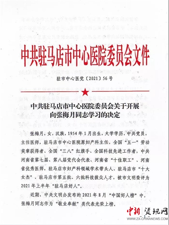 榜樣來啦!駐馬店市中心醫(yī)院號(hào)召全員學(xué)習(xí)張梅月