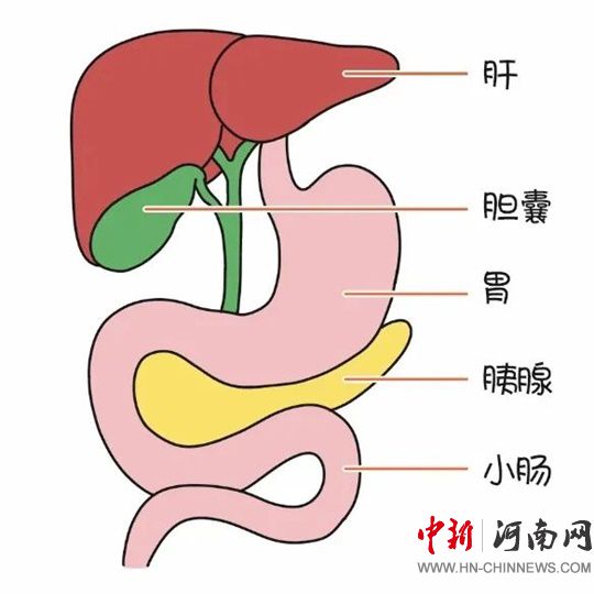 膽囊、膽管、部分胰腺、部分胃
