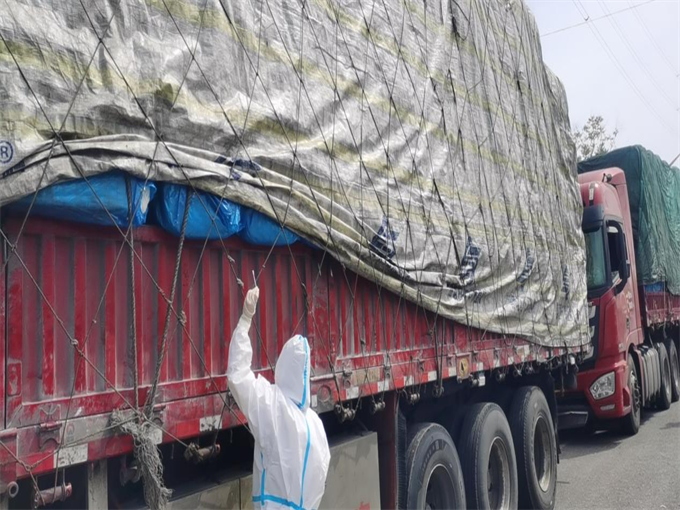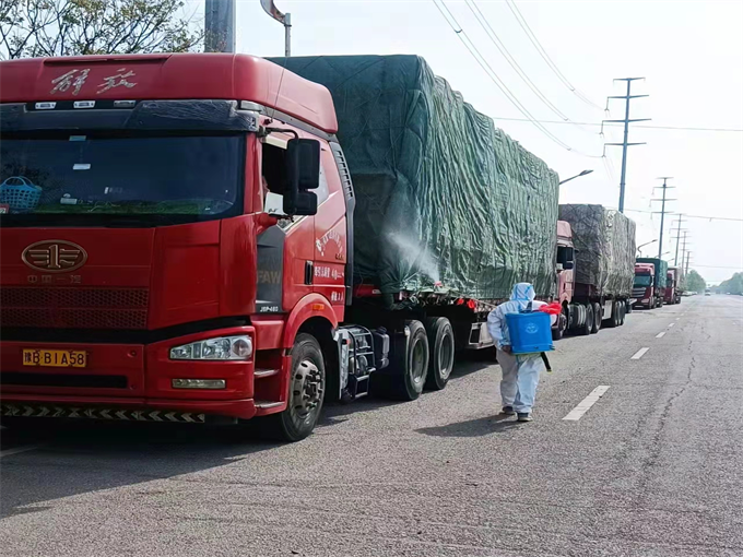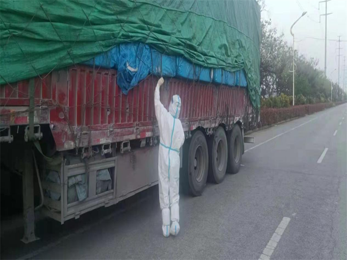 周六上午9點,第一批6輛運棉車隊準時到達新野縣某棉紡織上市公司指定區(qū)域。等待在那里的“全副武裝”工作人員迅速上前進行人員、貨物檢查核對,核對結(jié)果與網(wǎng)上申報一致后,專業(yè)人員對貨物、包裝物、車輛和隨車承運人員進行了“核酸”采樣,并第一時間送進專業(yè)實驗室進行檢測。在等待結(jié)果的間隙,專業(yè)人員又對貨物、車輛和承運人員以及周圍環(huán)境進行了專業(yè)無死角消殺。周日上午運到的4輛貨物也到達指定地點庫房,嚴格按照程序第一時間進行了專業(yè)核對消殺。至此該批進口美國的價值105萬美元的10車260噸棉花全部疫情防控消殺完畢,安全準時交付企業(yè)入庫,沒有耽誤生產(chǎn)使用。