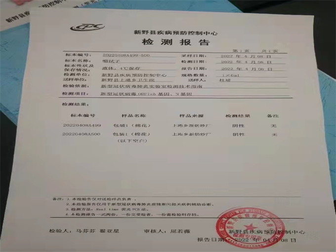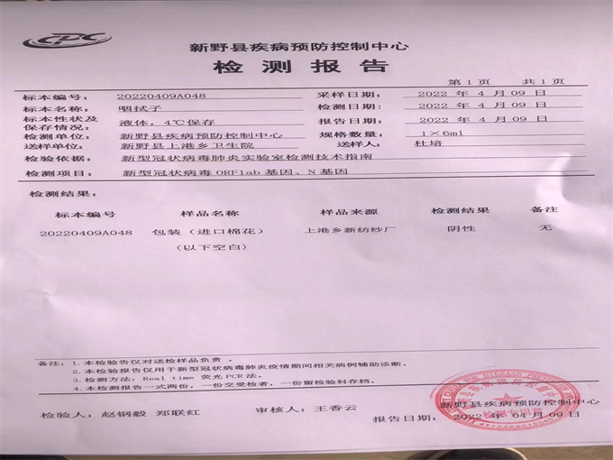 新野第一時間疫情檢測一批進口美國棉花 全力保障上市公司生產(chǎn)