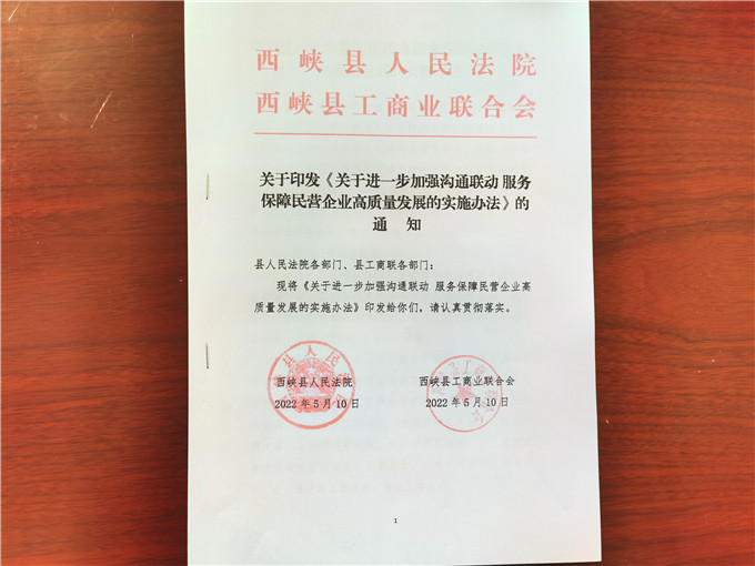 西峽縣法院與縣工商聯(lián)建立八項(xiàng)聯(lián)動(dòng)機(jī)制 服務(wù)保障民營(yíng)企業(yè)高質(zhì)量發(fā)展