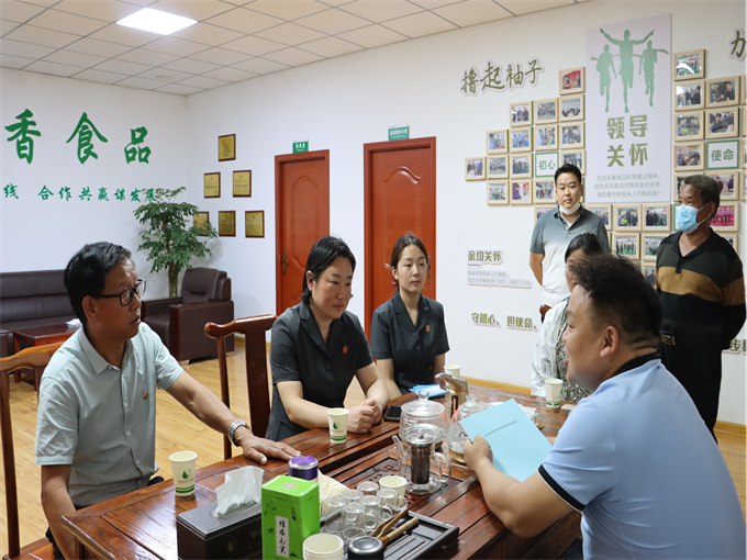 5月17日,紅泥灣法庭庭長(zhǎng)秦柯帶領(lǐng)法官助理陳珂及人民調(diào)解員惠大山先后到宛城區(qū)金田地農(nóng)業(yè)合作社、南陽(yáng)市起點(diǎn)塑編有限公司、宛禾香食品公司三家企業(yè)走訪。