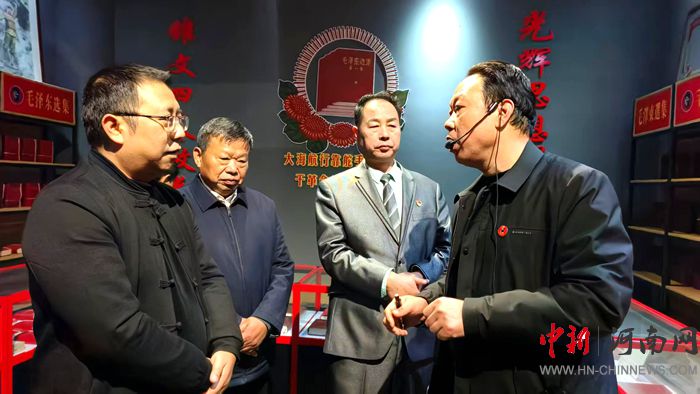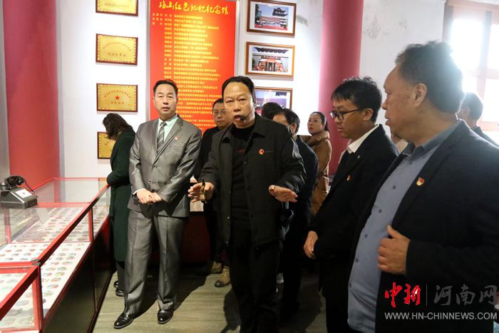 當日下午,馬繼民、劉軍祥、鄒虹、雷禮雅、張樹全、李輝義、喬新建、付華等一行,懷著對先輩們的崇敬之情,齊聚河南確山紅色記憶館,認真聽取館長姚真保的情況介紹,駐足凝視每一件館藏。紅色記憶館內,一件件飽經歲月洗禮的歷史文物、一幅幅生動鮮活的珍貴照片、一段段感人至深的英勇事跡,全方位、多角度地展現了確山地區(qū)波瀾壯闊的革命歷程和先烈們?yōu)閲要毩、民族解放所做出的巨大貢獻。