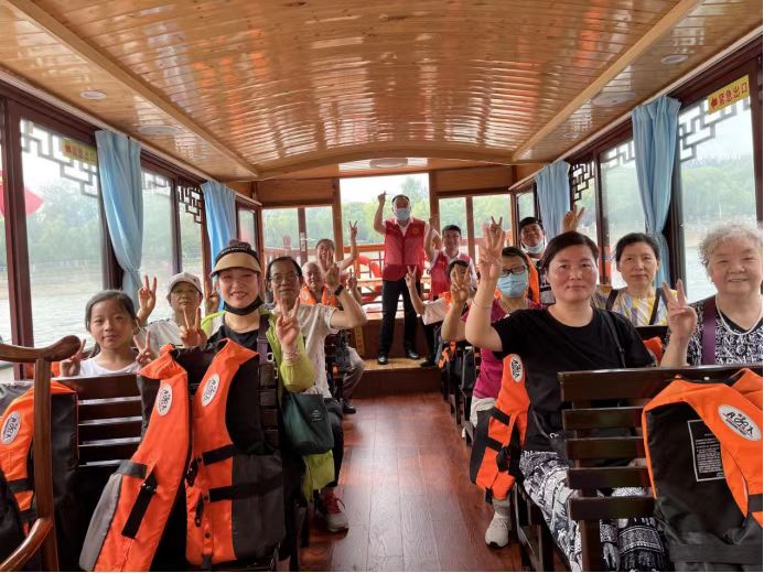 沙澧河風(fēng)景區(qū)景色怡人,美不勝收,漯河市殘聯(lián)志愿者在做好疫情防控和安全工作的前提下,組織大家有序登船。游船從碼頭出發(fā),載著殘疾人朋友們徜徉在沙澧河“城在水中映,水在綠中行,人在畫(huà)中游”的美麗畫(huà)卷中,畫(huà)舫的古色古香與兩岸的現(xiàn)代風(fēng)光交相輝映,盡顯沙澧韻味。通過(guò)工作人員的現(xiàn)場(chǎng)講解,殘疾人朋友們對(duì)沙澧河背后深厚的航運(yùn)文化、文字文化、民俗文化和紅色旅游文化底蘊(yùn)有了更深入的了解,每到一處無(wú)不感嘆中原文化的氤氳,漯河文化的厚重。