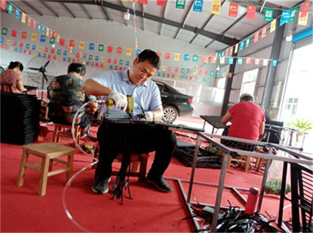 在另一個藤編車間,由于實行的是訂單化計件生產(chǎn)機制,經(jīng)過培訓的村民們,甚至可以把原料拿回家,利用閑暇時間藤編各類躺椅和家具。隔壁的廠房則是過塑印花車間,承接各類裝飾、廣告印制,也安置了不少村民就業(yè)。這幾個生產(chǎn)車間,集中體現(xiàn)了各級政府對肖營村產(chǎn)業(yè)扶貧的優(yōu)異成果,真正把扶貧模式由“輸血”變?yōu)榱?ldquo;造血”。