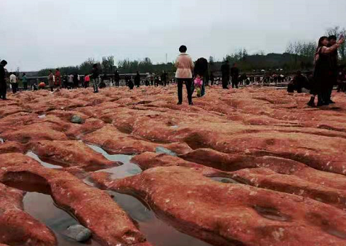 “《陸渾水庫》中記錄的第三紀(jì)紅色巖層應(yīng)該就是現(xiàn)在大家看到的紅色石頭。”河南省地礦局第一地質(zhì)礦產(chǎn)調(diào)查院教授級高級工程師王喜恒說,通過分析,這片石頭屬于第三系砂礫巖,距今約5000萬年,嚴(yán)格來說不屬于丹霞地貌,為丹霞地貌雛形。