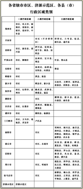 各省轄市市區(qū)、濟(jì)源示范區(qū)、各縣(市)行政區(qū)域類別