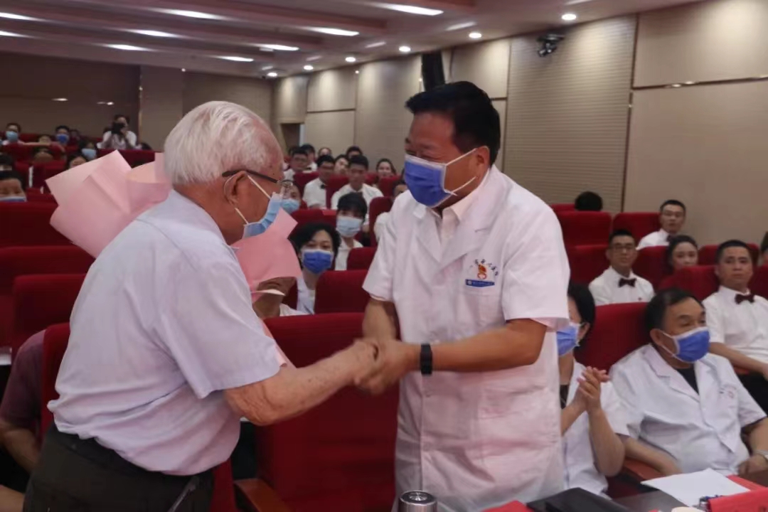 得益于上級部門的正確領(lǐng)導和廣大患者的認可,經(jīng)過一代又一代中心醫(yī)院人的無私奉獻和辛勤付出,商丘市中心醫(yī)院順利走過了40多年的風雨歷程。在黨的生日到來之際,退休老黨員、老領(lǐng)導宋新民和周運梅為黨的事業(yè)和醫(yī)院建設(shè)送上深深祝福。黨委書記秦功禮代表領(lǐng)導班子為宋新民送上鮮花,希望他一如既往地關(guān)注和支持中心醫(yī)院的發(fā)展。