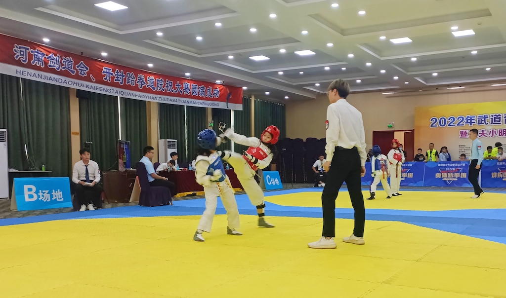 中新河南網(wǎng)8月17日電(陳英 通訊員 潘現(xiàn)忠)2022年8月14日下午,2022年武道青少年跆拳道公開賽在中國(guó)鄭州西泰山景區(qū)千稼集會(huì)議中心圓滿落下帷幕,來自全國(guó)各地五十余家俱樂部參加了本次比賽。