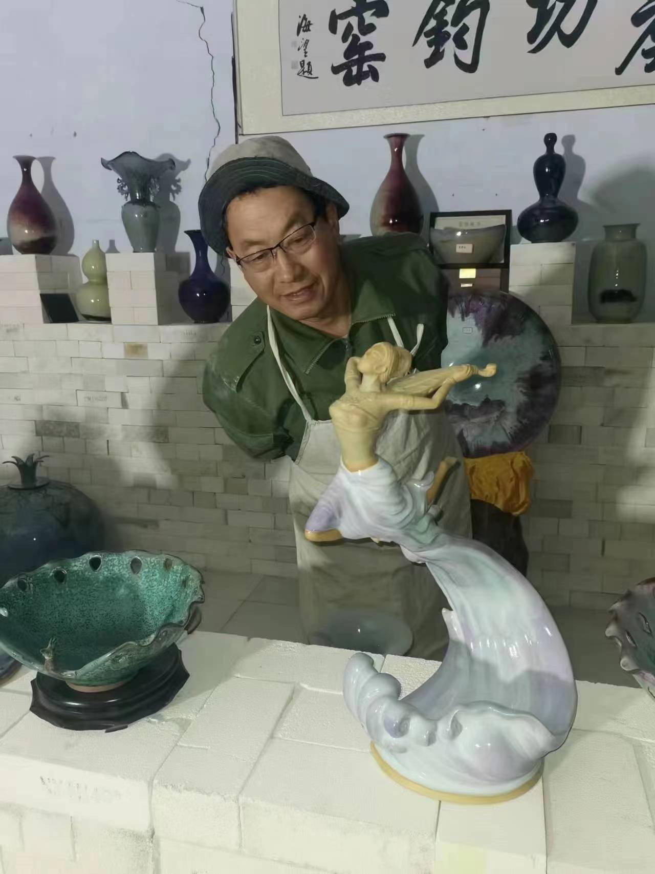 1986年侯俊功在神垕瓷高畢業(yè)后,拜鈞瓷藝術(shù)名家蔡大水、劉國安老師專心學(xué)習(xí)鈞瓷制作工藝。2013年創(chuàng)辦了自己的工作室,建起了液化氣燒窯爐、煤(柴)燒窯爐和炭燒窯爐。