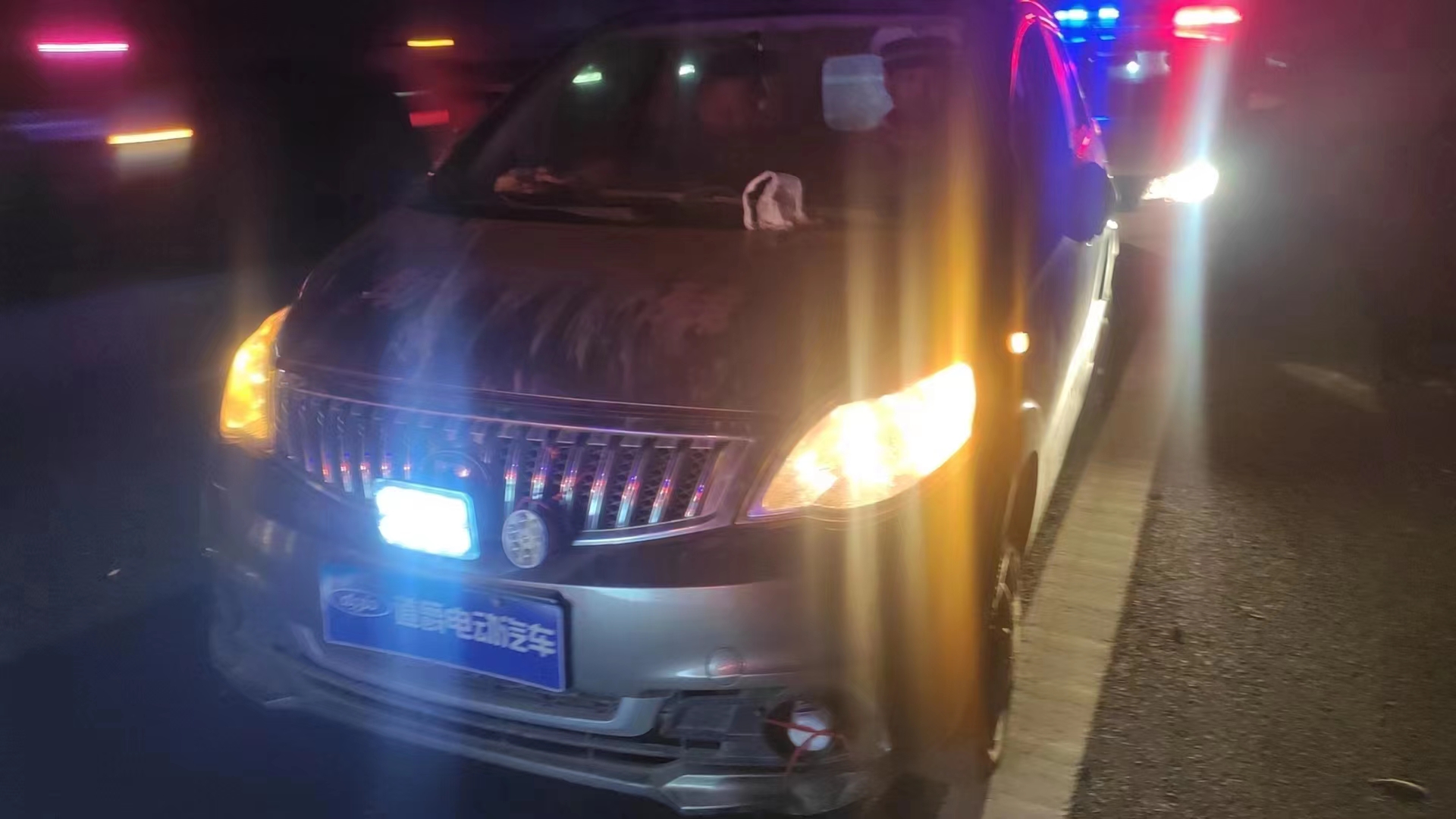 據(jù)商丘市公安局交警支隊(duì)高速大隊(duì)五中隊(duì)中隊(duì)長(zhǎng)馬化利介紹,當(dāng)日夜晚7時(shí)10分許,他接到大隊(duì)指揮中心警令稱,有過(guò)往司機(jī)報(bào)警說(shuō)一輛低速電動(dòng)四輪車在商南高速公路68公里處東幅由北向南逆行,車輛隨時(shí)都有被撞危險(xiǎn)。接警后,馬化利立即帶領(lǐng)中隊(duì)人員展開(kāi)搜救:駕駛兩臺(tái)警車兵分兩路同時(shí)出動(dòng),在東西兩側(cè)往南搜索巡查逆行車輛;聯(lián)系前方陽(yáng)新高速公路跨商南高速公路施工保通處,要求工作人員一旦發(fā)現(xiàn)逆行車輛,予以攔截施救,嚴(yán)防闖入保通區(qū)造成更大的事故險(xiǎn)情。