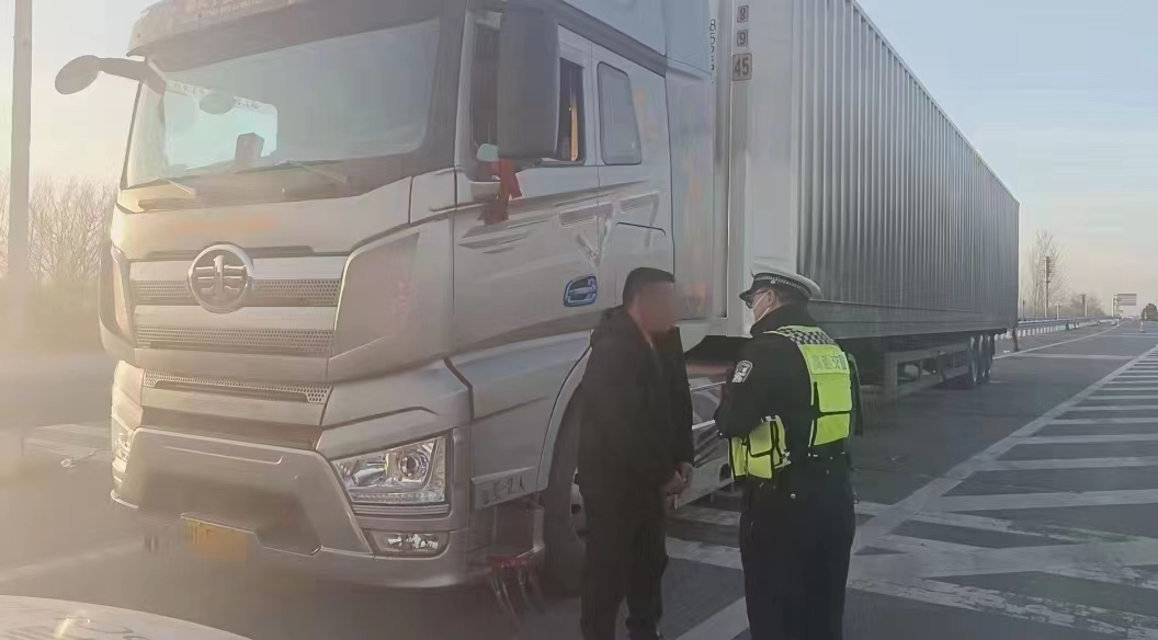 3月16日傍晚6時(shí)許,商丘市公安局交警支隊(duì)高速大隊(duì)六中隊(duì)副中隊(duì)長(zhǎng)李永杰帶領(lǐng)中隊(duì)人員,巡邏至濟(jì)廣高速公路400公里西幅處時(shí),看到一輛車牌號(hào)為皖LF7***的半掛車貨車突然減速駛?cè)霊?yīng)急車道后停下,未打開(kāi)雙閃燈,也未設(shè)置警戒標(biāo)志。民警見(jiàn)狀隨即上前查看情況得知,司機(jī)名叫張某會(huì),其從山東濟(jì)南出發(fā)準(zhǔn)備去往安徽亳州送貨,途中車內(nèi)北斗定位系統(tǒng)提示即將超時(shí),需要停車休息,避免疲勞駕駛。