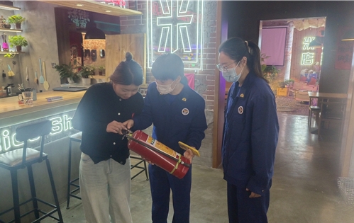 后倉街社區(qū)消防安全管理員日常對轄區(qū)門店消防安全排查過程中,通過排查發(fā)現(xiàn)門店服務(wù)人員對滅火器使用方法的知識匱乏。然后社區(qū)主動聯(lián)系文峰區(qū)消防隊(duì)邀請消防隊(duì)隊(duì)員深入轄區(qū)門店,對轄區(qū)門店內(nèi)的所有服務(wù)員逐個(gè)上門對其講解滅火器的使用方法,還有滅火器的管理和維修。并現(xiàn)場演示滅火器的使用方法,確保轄區(qū)商戶人員都能熟練掌握消防知識和技能。