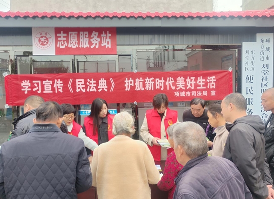 主題黨日結(jié)束后,項(xiàng)城市司法局黨員干部開展“學(xué)習(xí)宣傳《民法典》,護(hù)航新時(shí)代美好生活”普法宣傳活動(dòng)。法律法規(guī)志愿者們?yōu)閯⑻蒙鐓^(qū)居民群眾宣講民法典中關(guān)于婚姻家庭、土地承包經(jīng)營(yíng)權(quán)流轉(zhuǎn)、物權(quán)保護(hù)、相鄰關(guān)系等法律法規(guī),發(fā)放《民法典進(jìn)社區(qū)》《民法典》等法律書籍600余份,切實(shí)提高群眾法律意識(shí)和法治觀念,教育引導(dǎo)群眾養(yǎng)成辦事依法、遇事找法、解決問(wèn)題用法、化解矛盾靠法的習(xí)慣,營(yíng)造良好的法治氛圍。